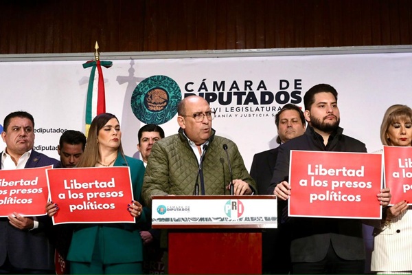 En conferencia de prensa, junto con integrantes de la bancada priista, el coordinador parlamentario señaló que hoy existen mexicanos encarcelados por manifestar sus ideas, tanto en la Ciudad de México como en el estado de Jalisco, donde —según expuso— más de tres docenas de personas fueron enviadas al penal de Puente Grande tras ejercer su derecho a la libre expresión.