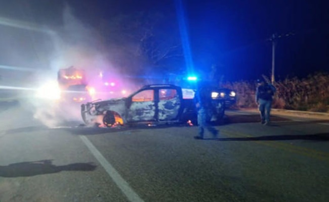 “Un camión tipo torton, una camioneta tipo pick up y un automóvil sedán fueron calcinados”, detalló la SSP en un comunicado.