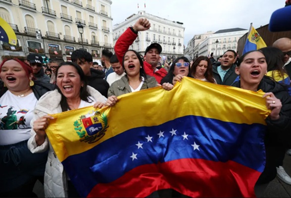 En el centro de Madrid, una venezolana alza una copa de sangría hacia el cielo. «¡Ahora es un nuevo comienzo!», proclama, rodeada de una multitud que este sábado salió a celebrar la captura de Nicolás Maduro y a soñar con un pronto regreso a casa.