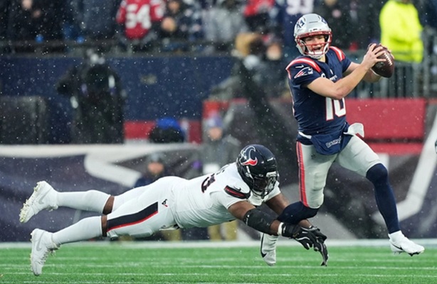 El joven pasador de Nueva Inglaterra fue sensato en la toma de decisiones y sentenció el triunfo de los Patriotas con un pase a Kayshon Boutte, quien a una mano y con el defensivo encima completó el proceso de recepción para decretar el marcador final con más de 13 minutos en el reloj, durante una helada tarde en el Gillete Stadium.