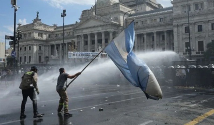 A pocas horas de iniciada la sesión, comenzaron los incidentes en las calles aledañas al Parlamento entre agentes federales y los primeros asistentes a la movilización contra la reforma, la cual fue convocada por la Confederación General del Trabajo (CGT), la histórica central gremial del país.