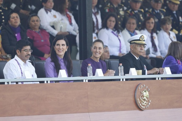 En la celebración, que se llevó a cabo en el Campo Deportivo Militar Marte, estuvieron presentes también la Presidenta de la Mesa Directiva del Senado de la República, Laura Itzel Castillo Juárez, y el Presidente de la Suprema Corte de Justicia de la Nación, Hugo Aguilar Ortiz, así como la Secretaria de las Mujeres, Citlali Hernández Mora e integrantes del gabinete legal y ampliado del Poder Ejecutivo.